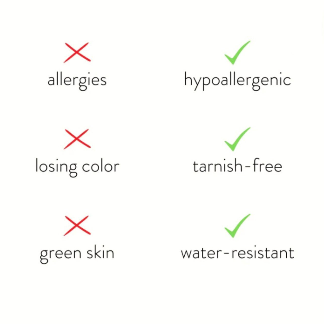 Mein Schmuck wird aus hochwertigen Materialien hergestellt und ist auf Langlebigkeit ausgelegt. Mein Edelstahlschmuck ist 100 % wasserdicht und verliert niemals seinen Glanz.
